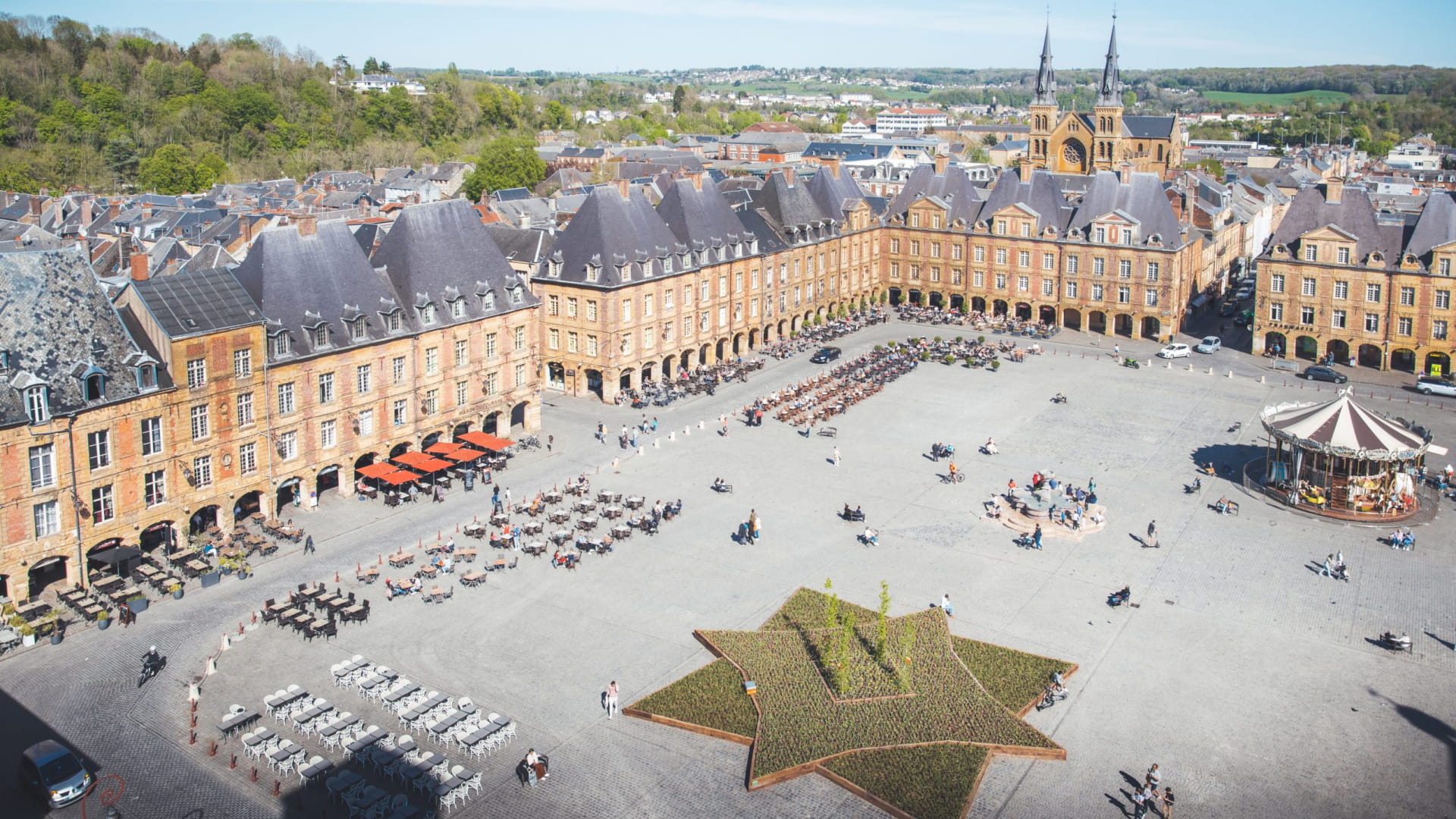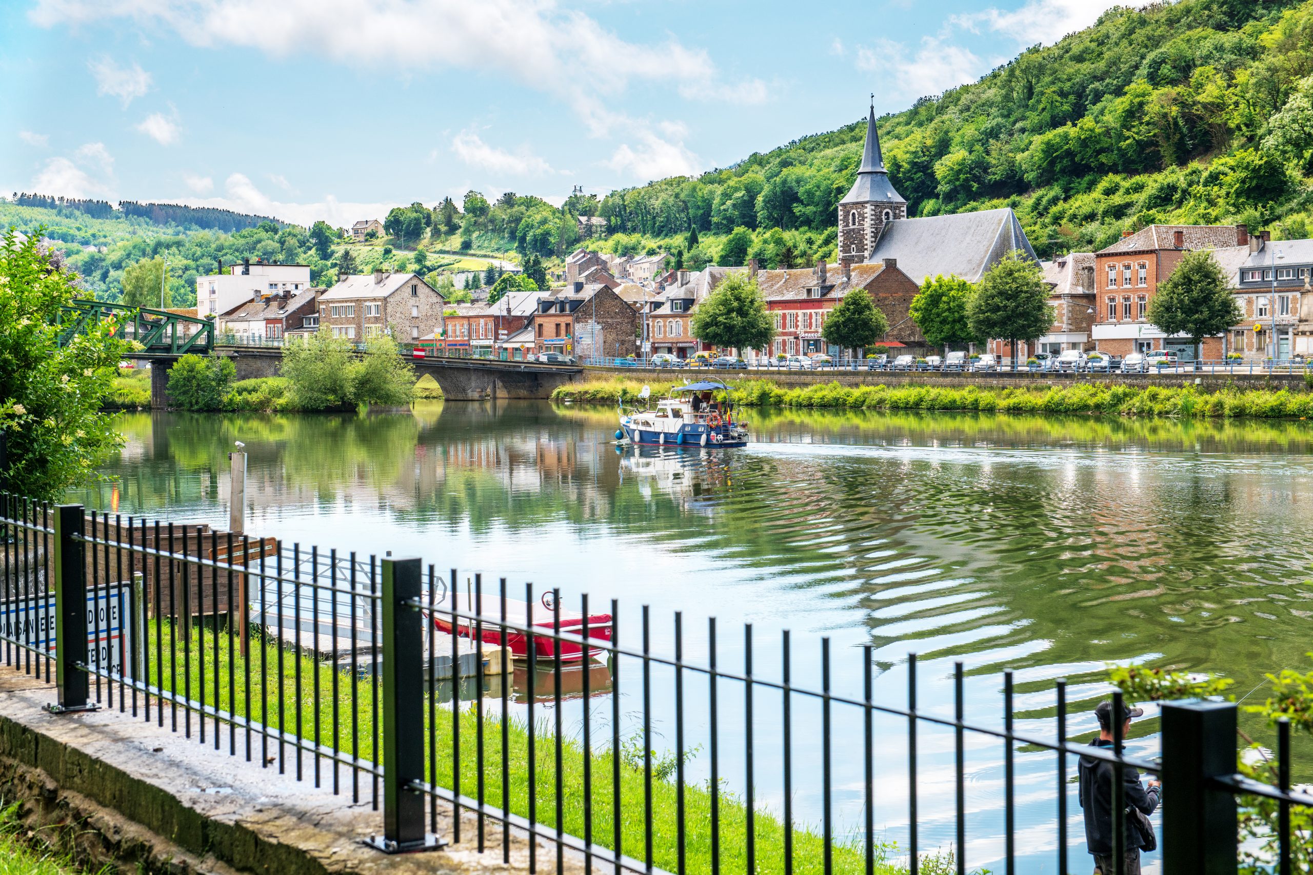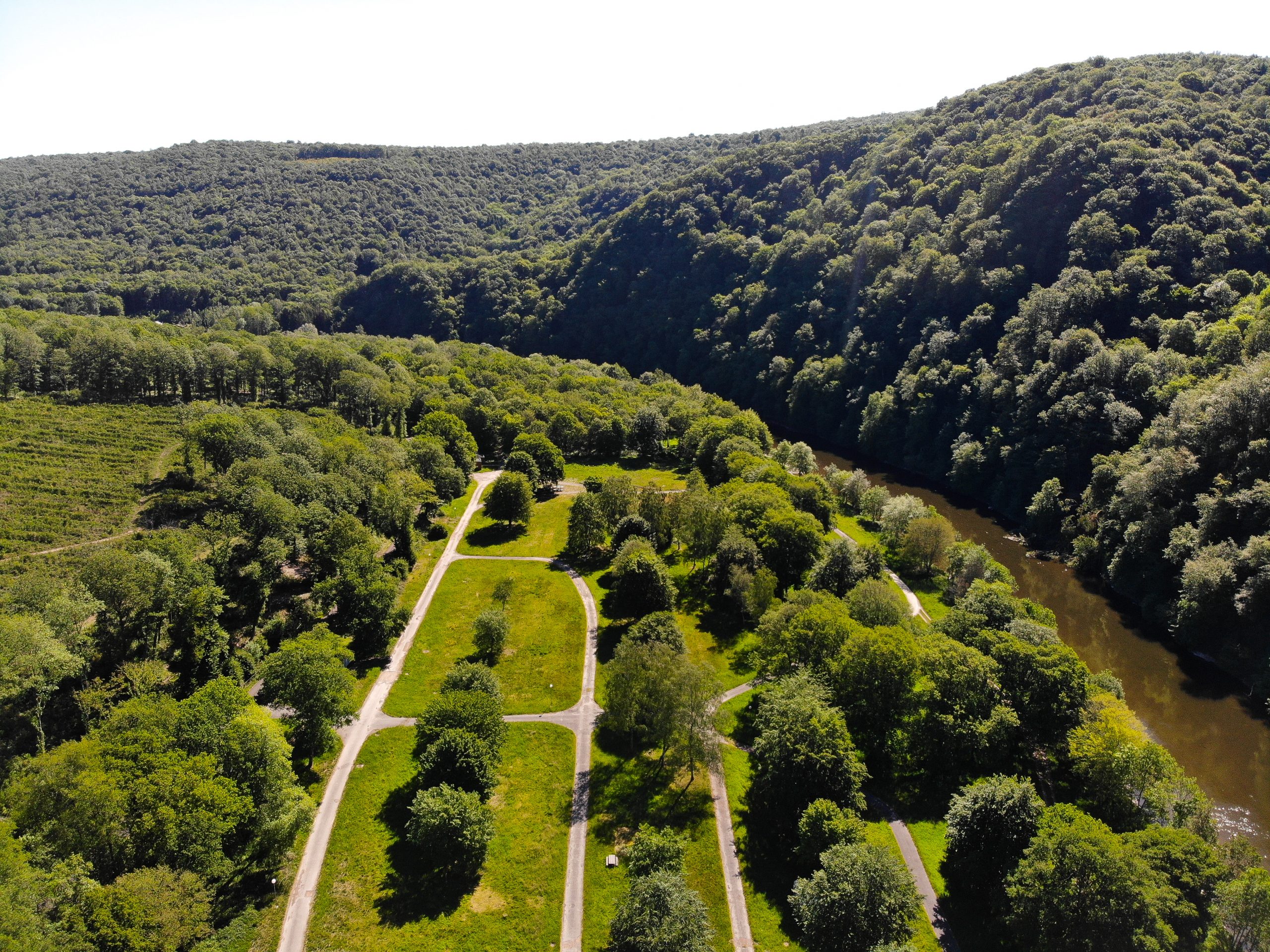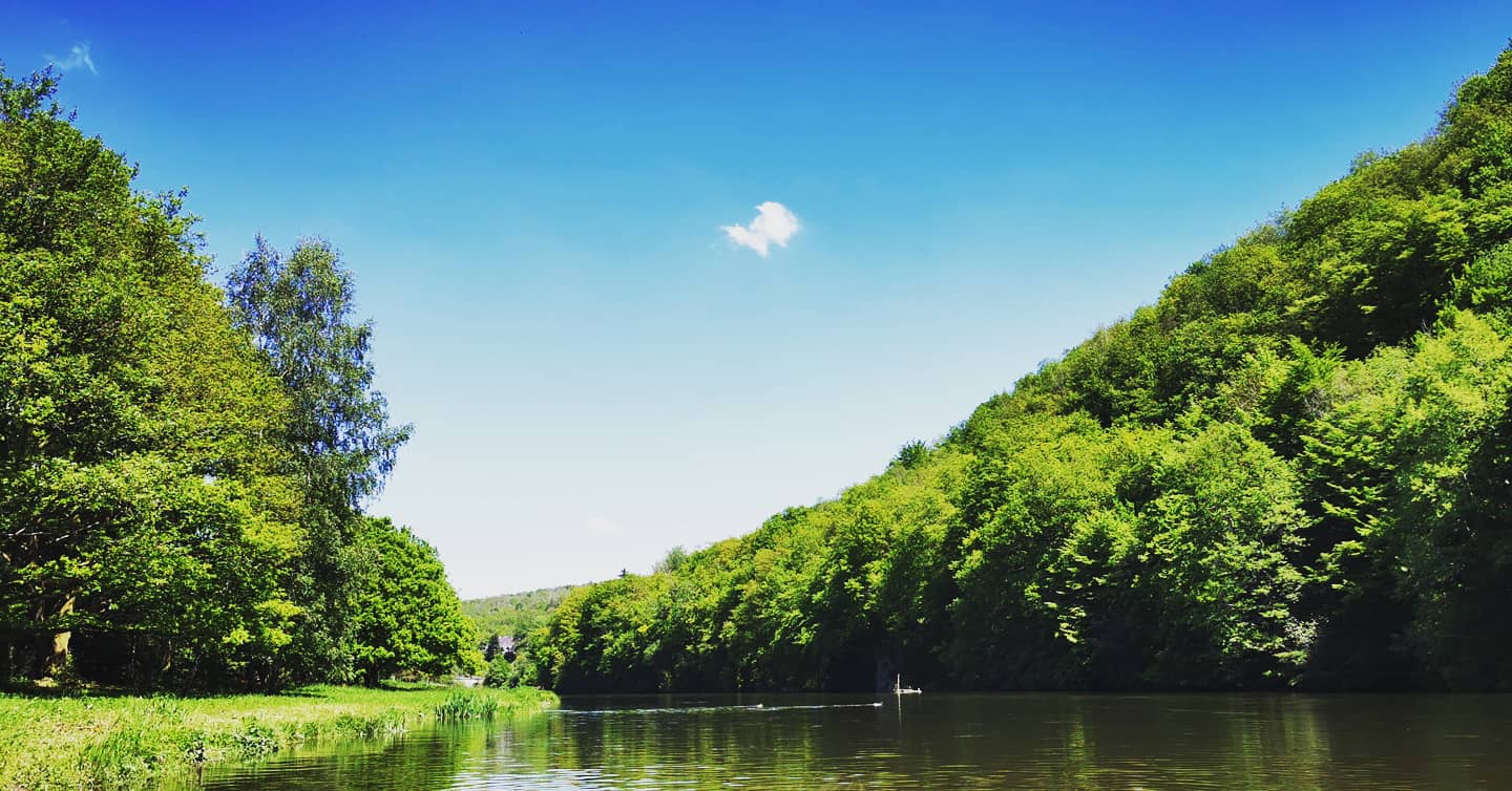 Blick auf die Mäander der Maas vom Vorplatz der Basilika Sainte-Jeanne-d'Arc aus