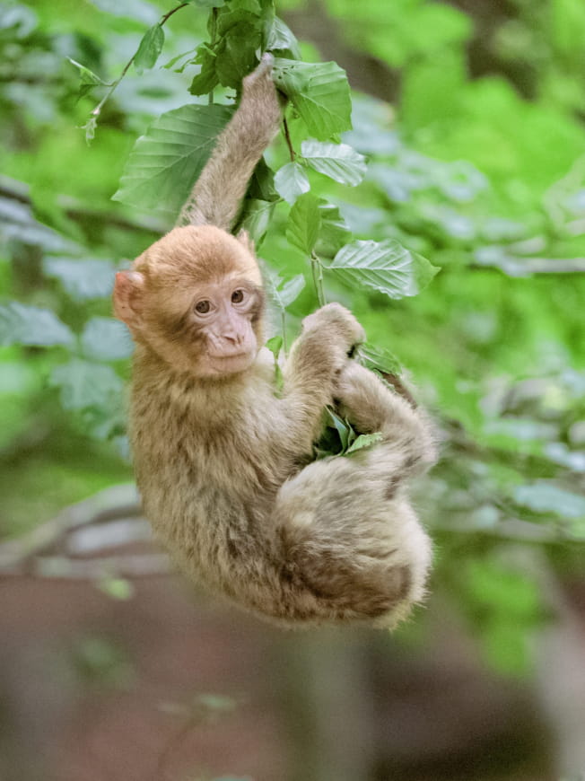 faszinierende Welt von über 200 Berberaffen, die in einem 24 ha großen Wald frei herumlaufen.