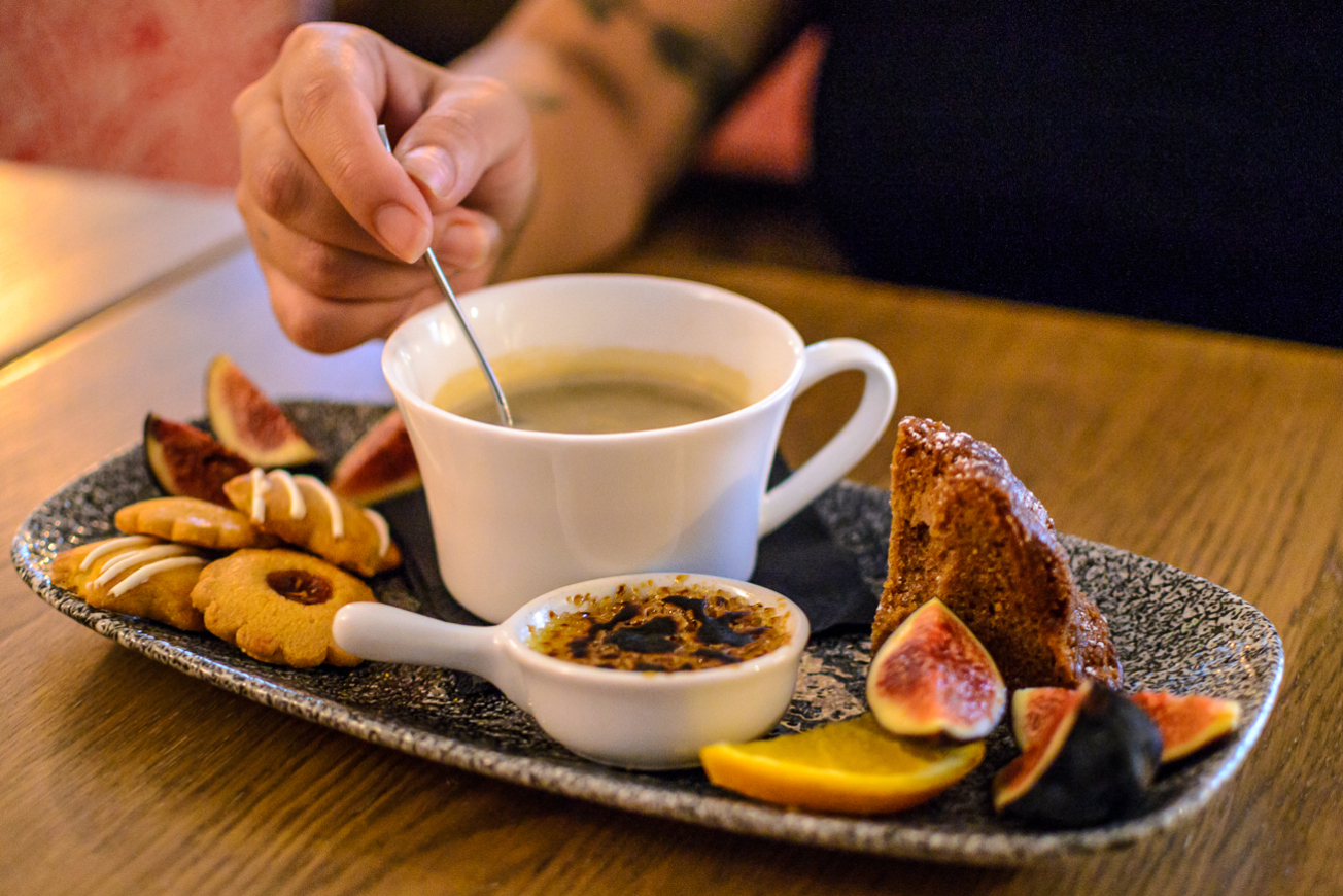 - 5 bis 6 Etappen mit süßen und herzhaften Kostproben, Getränke inklusive (Kaffee und Spirituosen).