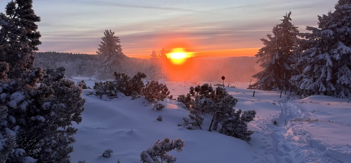 Der Ausgangspunkt ist der Col de grosse pierre, kann aber je nach Schneelage und Wetterbedingungen variieren. Schließen Sie mit den Geschichten rund um das Vogesenmassiv und seine Anekdoten ab. Die Pauschale pro Person beinhaltet auch das Ausleihen der Ausrüstung (Schneeschuhe, Stöcke, Stirnlampe). Die Tour ist für maximal 10 Teilnehmer ausgelegt und dauert durchschnittlich 3 Stunden. Kinder ab 8 Jahren sind nur in Begleitung eines verantwortlichen Erwachsenen zugelassen.