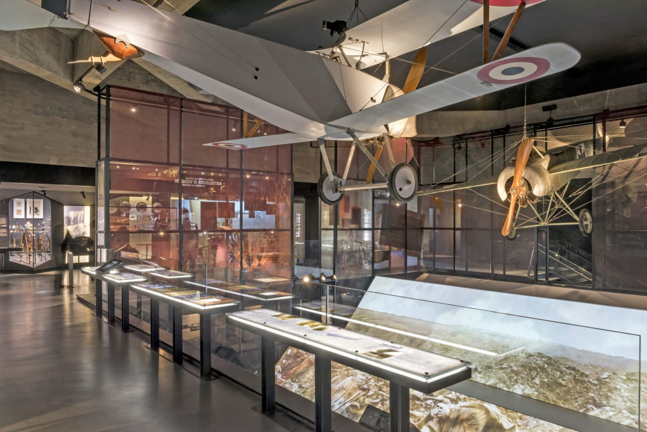 Das Mémorial de Verdun verfügt über eine einzigartige Sammlung und beeindruckende audiovisuelle Geräte, die Ihnen die Erfahrungen der Soldaten – sowohl der französischen als auch der deutschen – während der Schlacht um Verdun näher bringen. Im Erdgeschoss tauchen Sie in die Erfahrungen der Kämpfer an der Frontlinie ein. Eine audiovisuelle Show rekonstruiert dort die Höhepunkte der Schlacht, indem sie Archivbilder mit künstlerischen Ausdrucksformen der Soldaten vermischt. Um Sie herum sind in Vitrinen Alltagsgegenstände der Kämpfer ausgestellt, die von ihrem Leben an der Front zeugen.