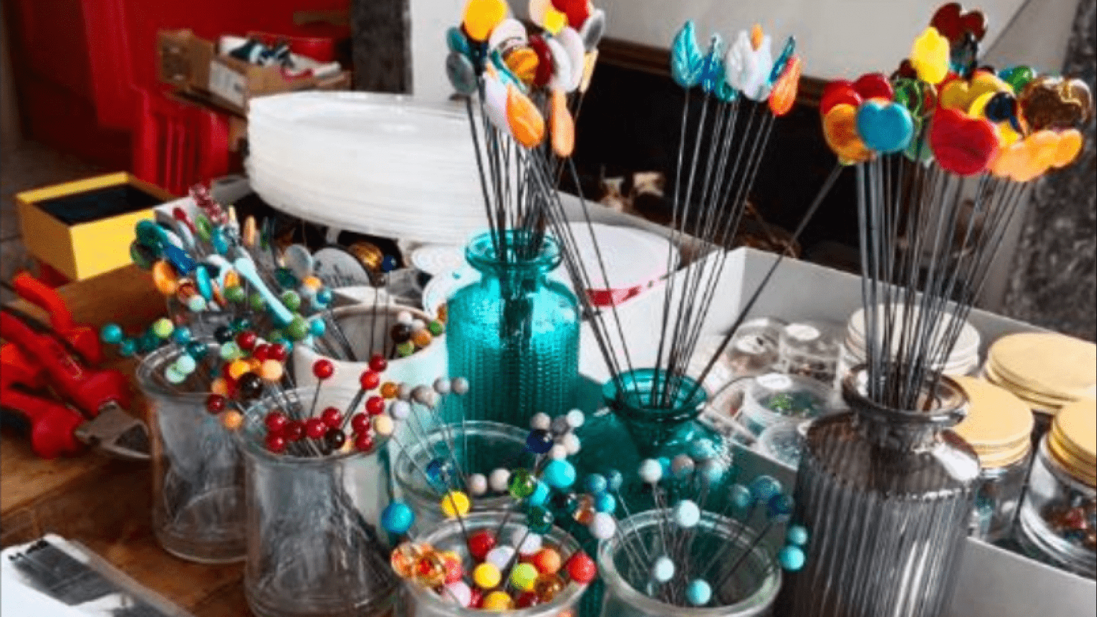 Dekorationen und Skulpturen aus Draht und gesponnenem Glas Animationen von Workshops zur Entdeckung des Drahtes