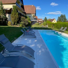 Besuchen Sie uns und schlendern Sie durch die Umgebung des Hotels, um eine bukolische, zauberhafte Umgebung zu entdecken, die ideal für Ihre Spaziergänge und Besichtigungen in unserer schönen Region ist. Unser Hotel bietet Ihnen eine schöne Terrasse und 18 Zimmer und eine Suite (mit privater Sauna) mit allem Komfort, damit Sie Ihren Aufenthalt im Elsass gerne verlängern. Der Außenpool ist den Hotelgästen vorbehalten. Der Zugang ist von der Check-in- bis zur Check-out-Zeit im Zimmerpreis inbegriffen.