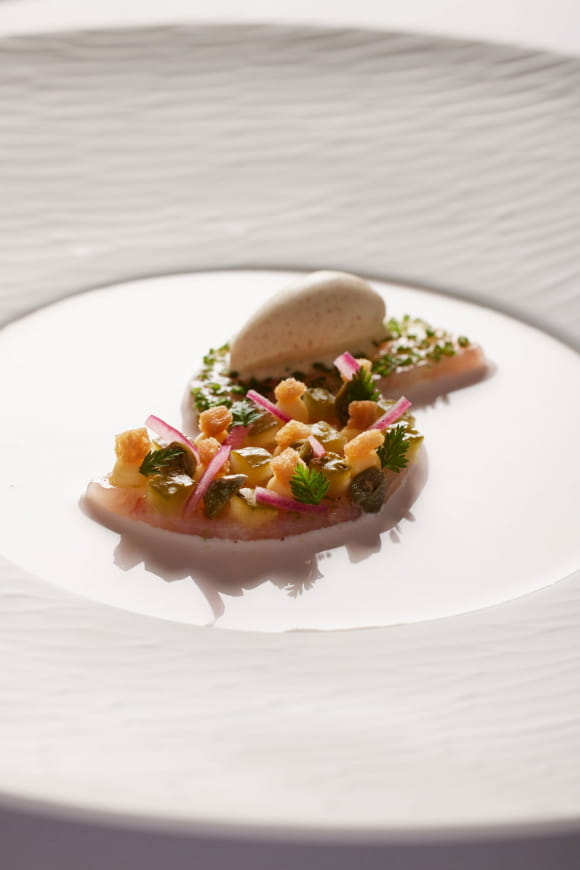 Das Menü Au Coeur de La Merise bietet Ihnen einen schmackhaften Spaziergang, je nach Inspiration des Küchenchefs und den Produkten der Saison. Dieses einzigartige Menü zeugt von den hohen Ansprüchen und der Kreativität, die in jedem Gericht stecken. Der elegante und gemütliche Rahmen des Saals vervollständigt dieses außergewöhnliche Erlebnis und ermöglicht es jedem Gast, den Moment voll auszukosten.
