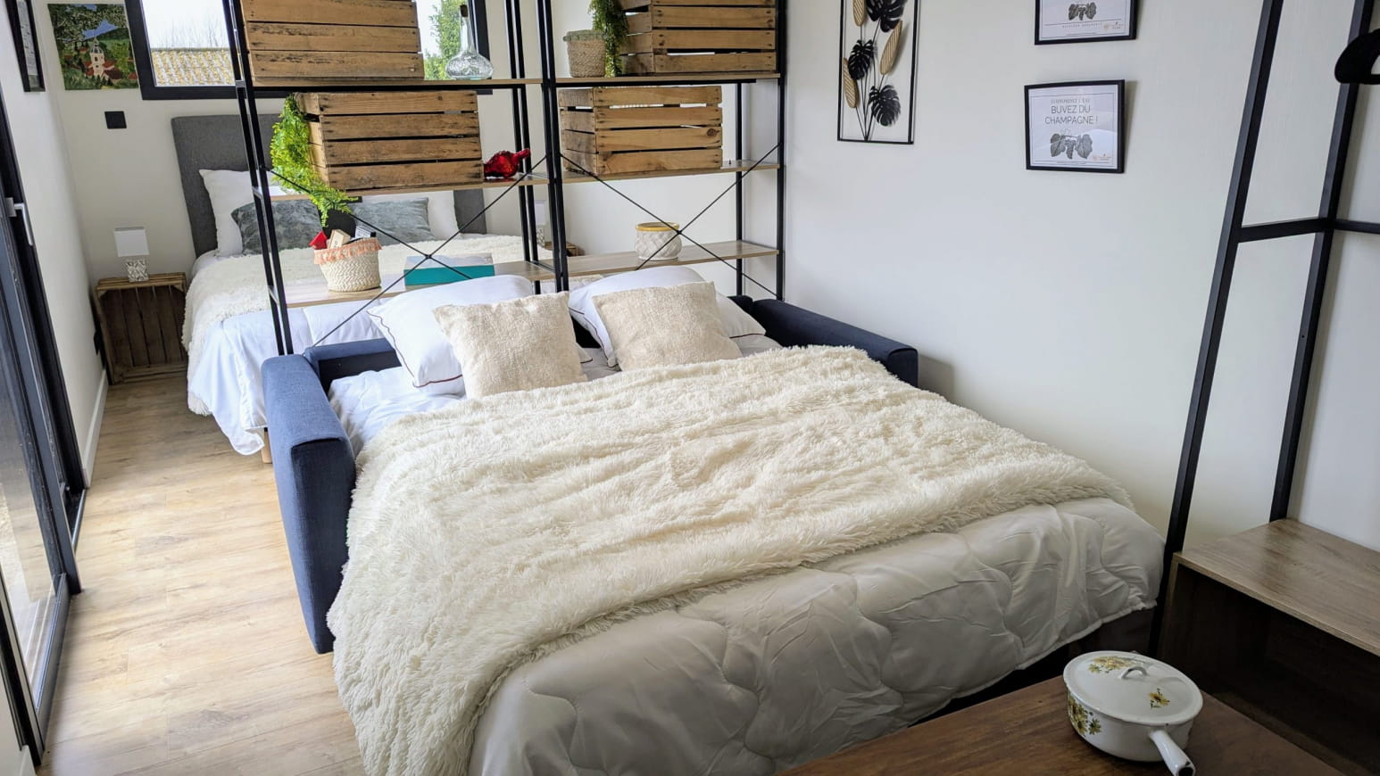 Das Weingut bietet mehrere Unterkünfte in Holzrahmenbauweise, die alle neu, geräumig und von natürlichem Licht durchflutet sind: Le Chardonnay, Pinot Gris, Pinot Blanc, Petit Meslier und L’Arbane. Für eine rustikalere und gemütlichere Atmosphäre sorgt das kürzlich renovierte Ferienhaus Pinot Noir, das die Authentizität der Champagne mit zeitgemäßem Komfort verbindet.