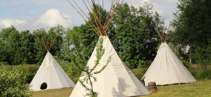 Erleben Sie eine einzigartige Erfahrung und schlüpfen Sie in die Rolle eines echten Indianers, indem Sie in einem Tipi übernachten. Das Tipi ist immer bemerkenswert und einfallsreich. Man erkennt es leicht an seinem kegelförmigen Gebäude, das von Holzstangen gestützt wird und einst mit Büffelfellen umwickelt war. Sein Futtersystem sorgt im Sommer für eine perfekte Belüftung und hält im Winter warm.