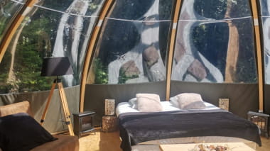 Etat Nature ist ideal in einer friedlichen grünen Naturlandschaft gelegen und bietet Ihnen einen außergewöhnlichen Aufenthalt am Waldrand. Genießen Sie in einer Blase den Komfort einer ungewöhnlichen und umweltbewussten Unterkunft. Tanken Sie mitten auf dem Land neue Energie und entdecken Sie die Sanftheit des Slow Life! Entspannen Sie sich eine Stunde lang in ihrem privaten Whirlpool und genießen Sie dann zur Essenszeit die zahlreichen regionalen Köstlichkeiten.