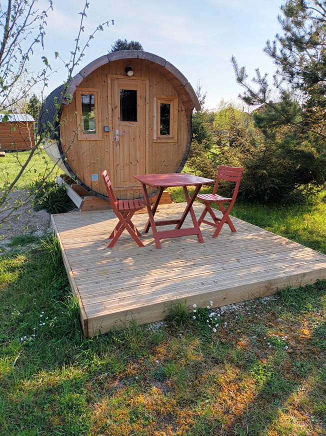 Wir bieten unseren Gästen an, in unserem Fass für 2 Personen zu übernachten. Es befindet sich auf unserem Grundstück inmitten von Feldern mit Blick auf unsere Ziegen und verfügt über eine Mikrowelle, einen Minikühlschrank und eine Kaffeemaschine. Unsere Gäste profitieren außerdem von einer Terrasse und einem privaten Badezimmer in der Nähe des Fasses.
