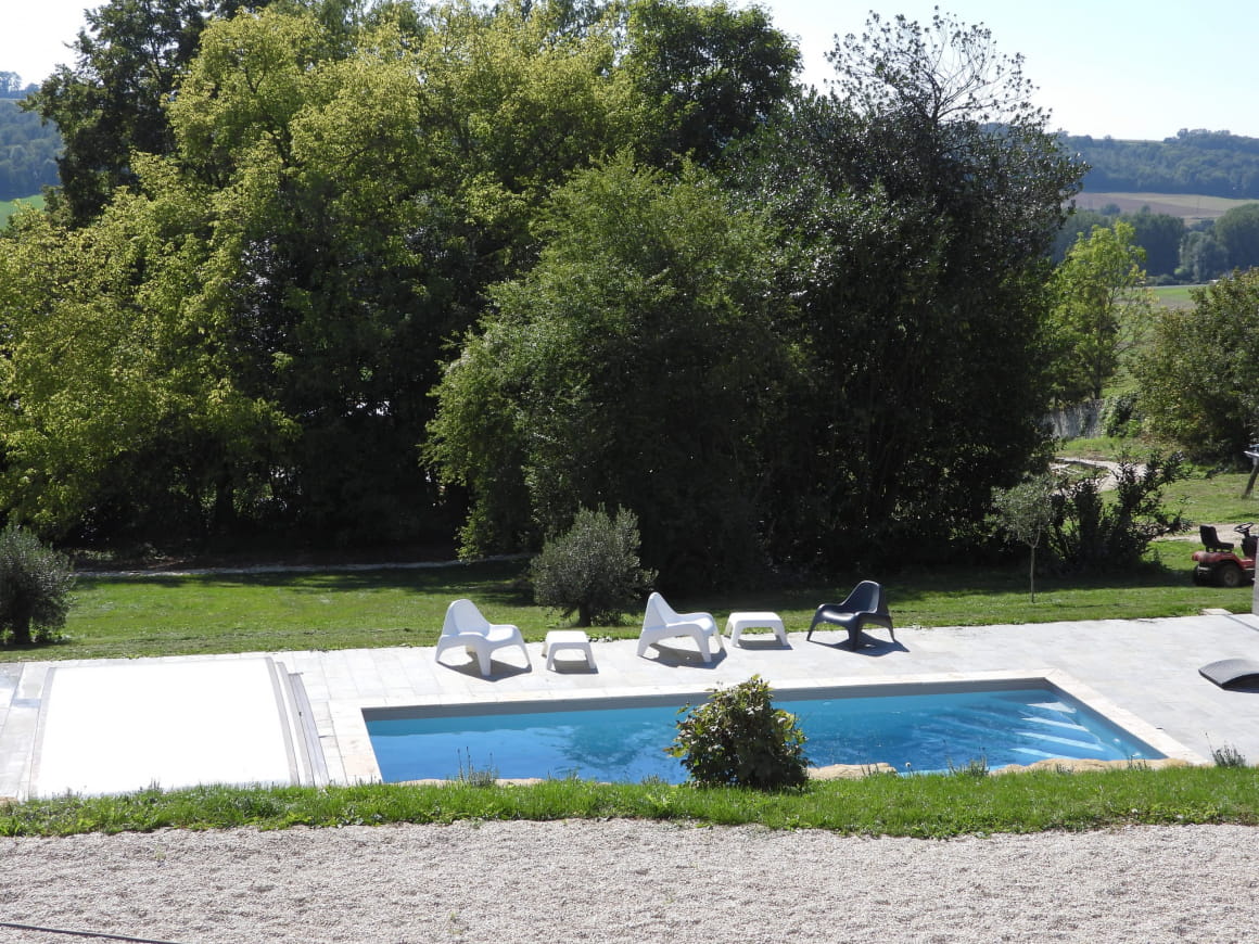 Genießen Sie eine erfrischende Pause am Pool, während Sie die herrliche Aussicht bewundern. Eingebettet in eine grüne Umgebung ist diese Oase der Ruhe der ideale Ort, um sich inmitten der Natur zu entspannen und neue Energie zu tanken.