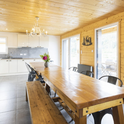 Wenn Sie sich für das Chalet Lucy entscheiden, können Sie zwei oder mehr Übernachtungen mit eigenem Spa genießen und sind nur wenige Schritte vom See von Gérardmer entfernt. Auf einer Fläche von 240 m² kann diese Hütte bis zu 14 Personen beherbergen, davon 8 Erwachsene und 6 Kinder.