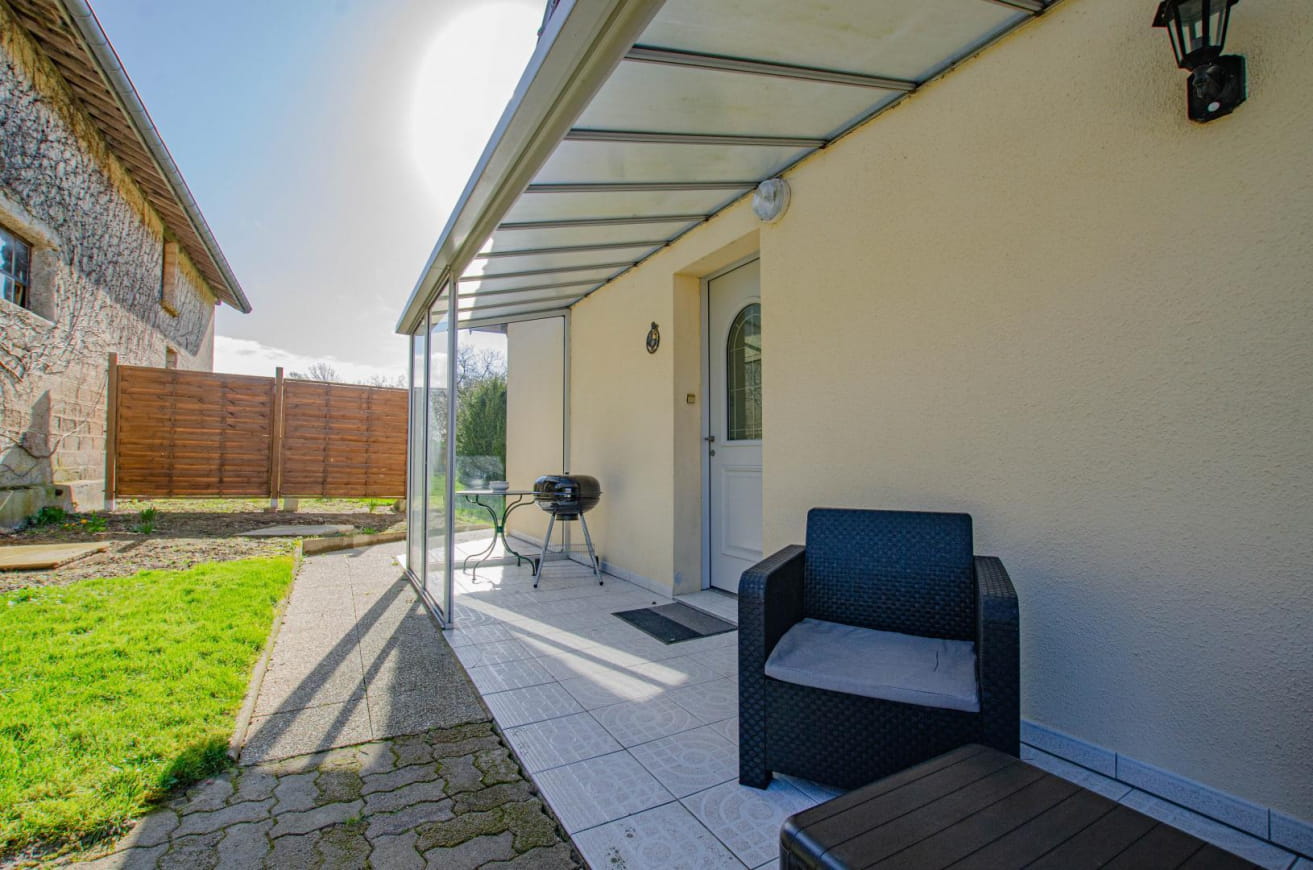 Sie verfügen im Hochparterre über eine geräumige Küche mit Essecke, ein gemütliches Wohnzimmer mit Essecke und Zugang zu einem Balkon, 2 Doppelzimmer, ein Zweibettzimmer. Ein Badezimmer mit begehbarer Dusche, Waschbecken und Stauraum sowie ein separates WC stehen Ihnen ebenfalls zur Verfügung. Draußen haben Sie Zugang zu einem nicht eingezäunten Grundstück, das gerade angelegt wird, mit Rasen für Ihre Entspannungsmomente auf den Liegestühlen, einer Terrasse mit Gartenmöbeln und Grill und einer Garage im Untergeschoss, in der Sie Ihr Auto, Ihre Fahrräder, Ihre Kinderwagen… unterbringen können.