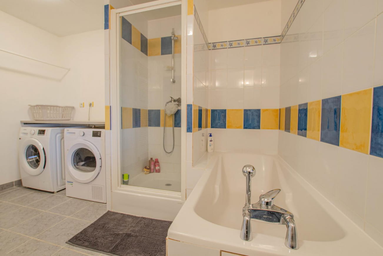 Im Erdgeschoss bietet das Ferienhaus eine Küche mit Essbereich, ein Wohnzimmer, ein helles Esszimmer auf der Veranda, ein Doppelzimmer (Bett 160×200), ein Badezimmer (Dusche + Badewanne + Doppelwaschbecken) und ein separates WC mit Handwaschbecken. Im Obergeschoss haben Sie Zugang zu einem Doppelzimmer (Bett 160×200), einem Einzelzimmer (Bett 90×190) und einem Dreibettzimmer (3 Betten 90×190) mit Fernseher. Auf dem Treppenabsatz befindet sich eine Entspannungs-/Spielecke mit Sesseln und einer Bibliothek, die ideal für Kinder ist. Draußen: Parkplatz vor dem Haus, eingezäunter Garten mit Gartenmöbeln, Sonnenschirm, Grill und Liegestühlen. Um Ihren Aufenthalt zu erleichtern, sind die Betten bei der Ankunft gemacht, die Handtücher und Haushaltswäsche werden gestellt, die Nebenkosten sind im Preis inbegriffen und die Endreinigung ist inbegriffen.
