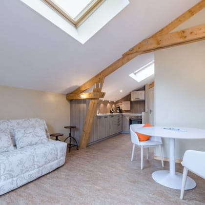 Das Ferienhaus Sous le Figuier ist im Obergeschoss eingerichtet und verfügt über einen eigenen Eingang, sodass Sie während Ihres gesamten Aufenthalts Ihre Privatsphäre wahren können. Sie verfügt über ein Doppelzimmer mit zwei Einzelbetten, die zu einer geräumigen Liegefläche von 180 cm zusammengeschoben werden können. Außerdem kann ein Schlafsofa in eine 140 cm breite Liegefläche umgewandelt werden, um 2 weitere Personen unterzubringen. Das Ferienhaus verfügt außerdem über einen großen Wohnraum mit Sitzecke und Essbereich. Er führt zu einer voll ausgestatteten Küche. Das Badezimmer ist mit einer Dusche, einer Waschküche und einer separaten Toilette ausgestattet.