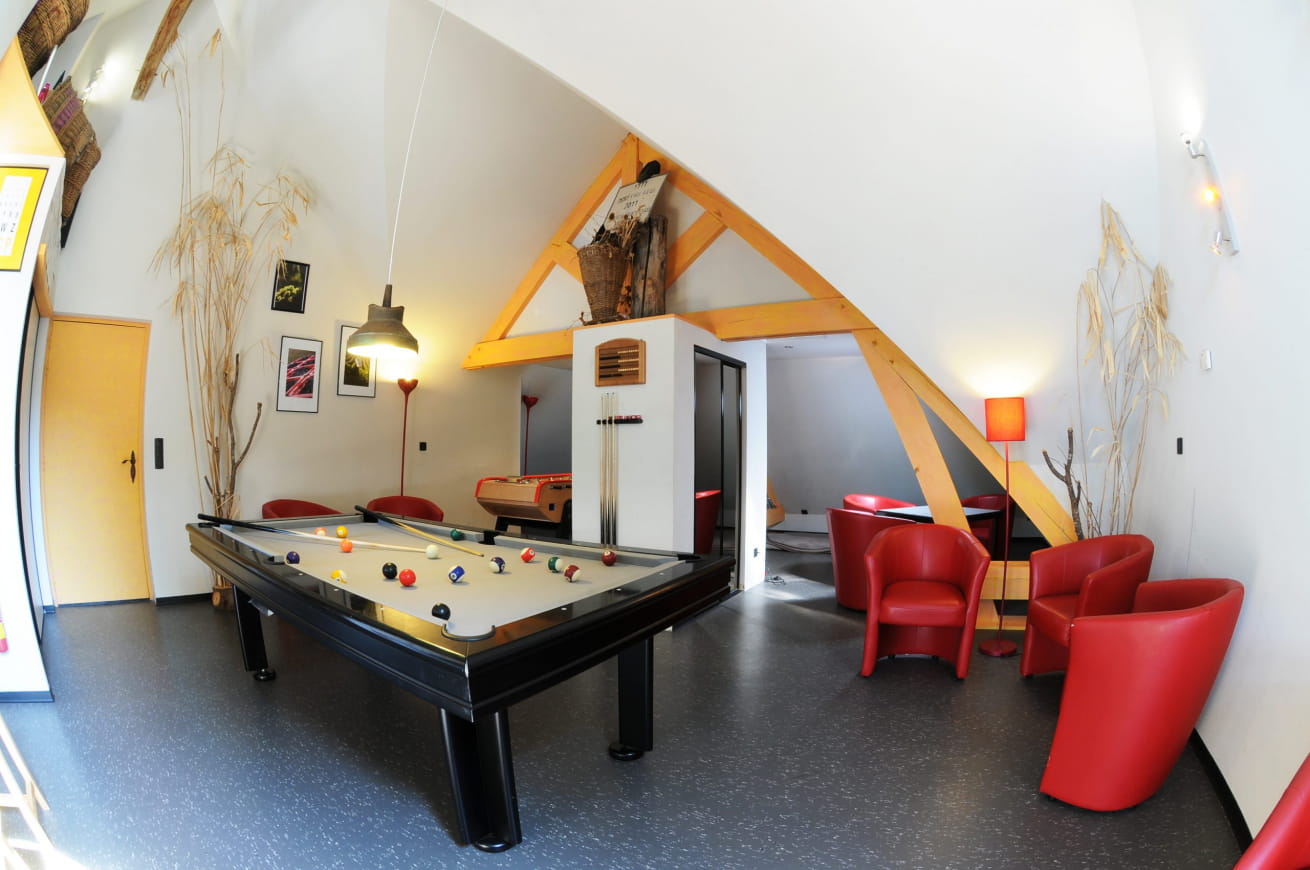 La Halte Saint Bernard bietet einen ruhigen Ort für einen Moment der Entspannung mit Freunden. Sie verfügt über eine Bar mit Kamin, eine geräumige, mit Gartenmöbeln ausgestattete Terrasse und eine Entspannungsecke im Inneren. Sie verfügt außerdem über einen Unterhaltungsraum mit Champagnerbar, Billardtisch und Tischfußball.