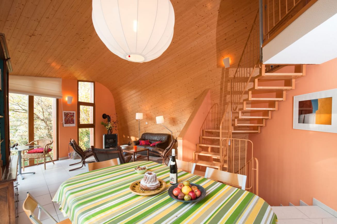 Dieses Haus im Herzen von Colmar beeindruckt immer wieder aufs Neue. Es verfügt unter anderem über ein großes Zwischengeschoss mit einer Holzsitzgruppe und einem großen Himmelbett. Im Erdgeschoss bietet ein Schlafzimmer zwei Einzelbetten und ein Badezimmer. Ein weiteres Zimmer ist ebenfalls im Gartengeschoss verfügbar und verfügt über ein ausgestattetes Badezimmer. Das Ferienhaus Kiwi wäre die ideale Unterkunft für einen Aufenthalt mit Freunden oder der Familie. Mit seinen verschiedenen Schlaf- und Gemeinschaftsbereichen kann es bis zu 6 Personen beherbergen.