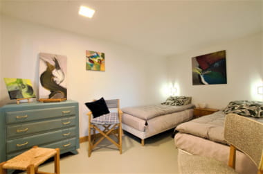 Dieses Ferienhaus kann bis zu 5 Personen beherbergen und ist ideal für einen Aufenthalt mit der Familie oder mit Freunden. Im Erdgeschoss befindet sich ein großer Wohnbereich mit Wohnzimmer, Esszimmer und voll ausgestatteter Küche sowie ein Twin-Schlafzimmer. Im Obergeschoss finden Sie eine Entspannungsecke mit Schlafgelegenheiten auf dem Zwischengeschoss sowie eine Master-Suite mit eigenem Bad.