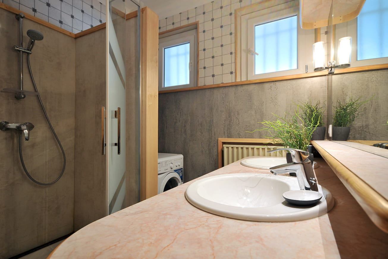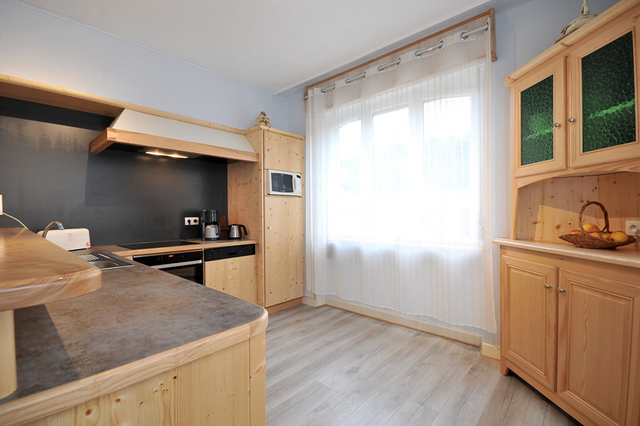 Das Ferienhaus verfügt über 3 Schlafzimmer, die alle nach Südosten ausgerichtet sind, um mit dem natürlichen Licht eine schöne Helligkeit zu haben. Sie verfügen über große Schränke, in denen Sie Ihre Sachen gut verstauen können. Sie werden eine gut beleuchtete und eingerichtete Inneneinrichtung mit einer Vorliebe für die ästhetische Seite des Holzes bemerken, einschließlich des Badezimmers. Im Wohnzimmer und in der Küche, die zu einem Essbereich hin offen ist, sind die Möbel modern und die Ausstattung komplett.
