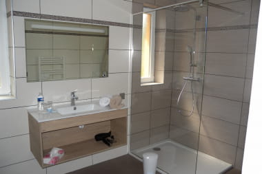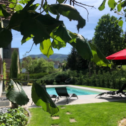 Sie wohnen im Zimmer Coeur d’Alsace, das sich im Erdgeschoss des Hauses befindet und über eine eigene Terrasse verfügt. Privates Badezimmer mit WC, modulierbares Bett als Doppelbett 200X200 oder Einzelbetten 100X200.
