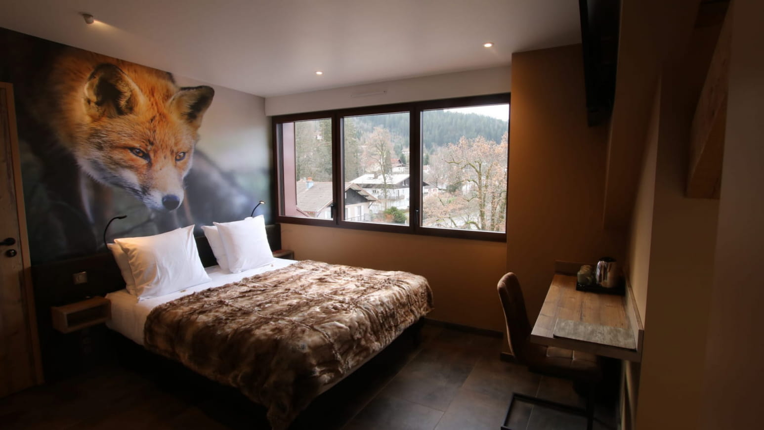Haben Sie Lust auf einen Ausflug zu zweit oder einen Kurzurlaub mit der Familie? Das Hotel Les Loges du Parc lädt Sie ein, das Zimmer Goupil zu entdecken, das Personen mit eingeschränkter Mobilität gewidmet ist und in Zusammenarbeit mit dem Fotografen Adrien Favre, einem Künstler, der sich sehr für den Schutz von Wildtieren einsetzt, entstanden ist! Diese geräumige, komfortable und gemütliche Unterkunft empfängt Sie nur wenige Schritte vom See und dem Stadtzentrum von Gérardmer entfernt.