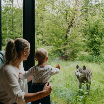 Besuchen Sie den Tierpark Sainte-Croix, den ersten in Europa, der für sein Angebot an Naturreisen das EU-Ecolabel erhielt. Lassen Sie sich vom Heulen der Wölfe in den Schlaf wiegen, eine unvergessliche Nacht in nächster Nähe zu den Tieren.