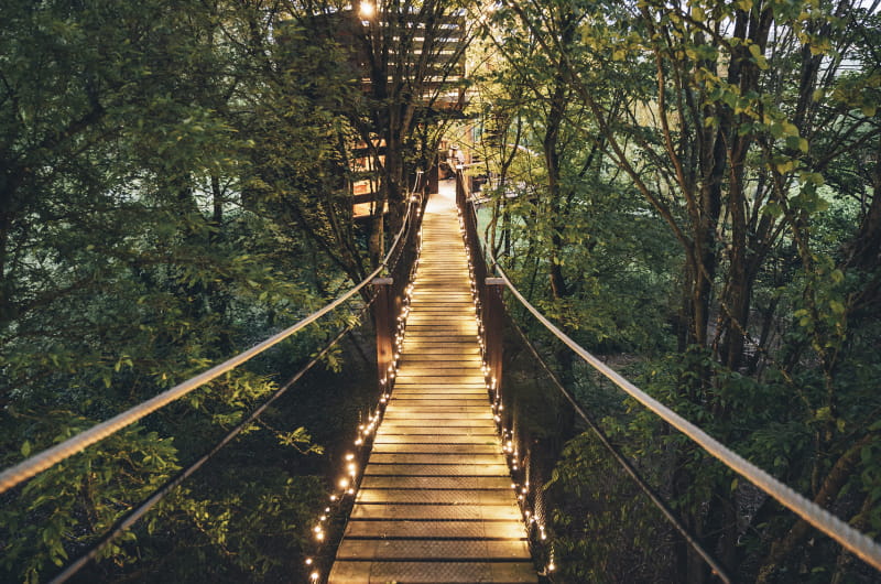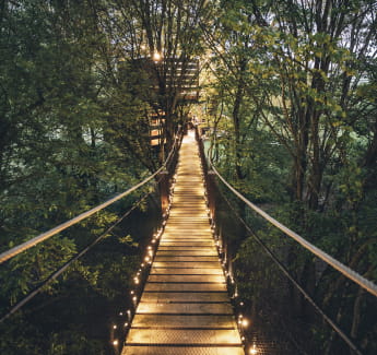 Wir verlassen den festen Boden unter den Füßen und gönnen uns einen Moment in der Luft. Während wir die Stufen der Leiter hinaufsteigen, wird unser Staunen immer größer. Wir stoßen die Türen eines Baumhauses auf, in dem wir uns direkt mit unseren neuen gefiederten Nachbarn bekannt machen. Die atemberaubende Aussicht aus dem Fenster ruft uns, wir beobachten den faszinierenden Tanz der Vögel, blicken auf eine erholsame Natur und erahnen die Gipfel, die sich am Horizont abzeichnen.