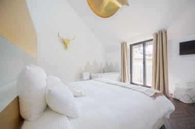 With a chic and contemporary decoration, arranged in an old farmhouse, the five suites are all singular and each one benefits from a spacious space and a view on the wooded garden.