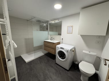 This 80 m² meublé de tourisme, nestled on the 2ᵉ floor under the roofs, can accommodate up to 6 people. It has 2 comfortable bedrooms, a fully equipped kitchen, a bright living room with sofa bed, and a modern bathroom with walk-in shower. You’ll also benefit from a spacious office for telecommuting, high-performance fiber Wi-Fi access and a connected TV with 140 channels and Amazon Prime.