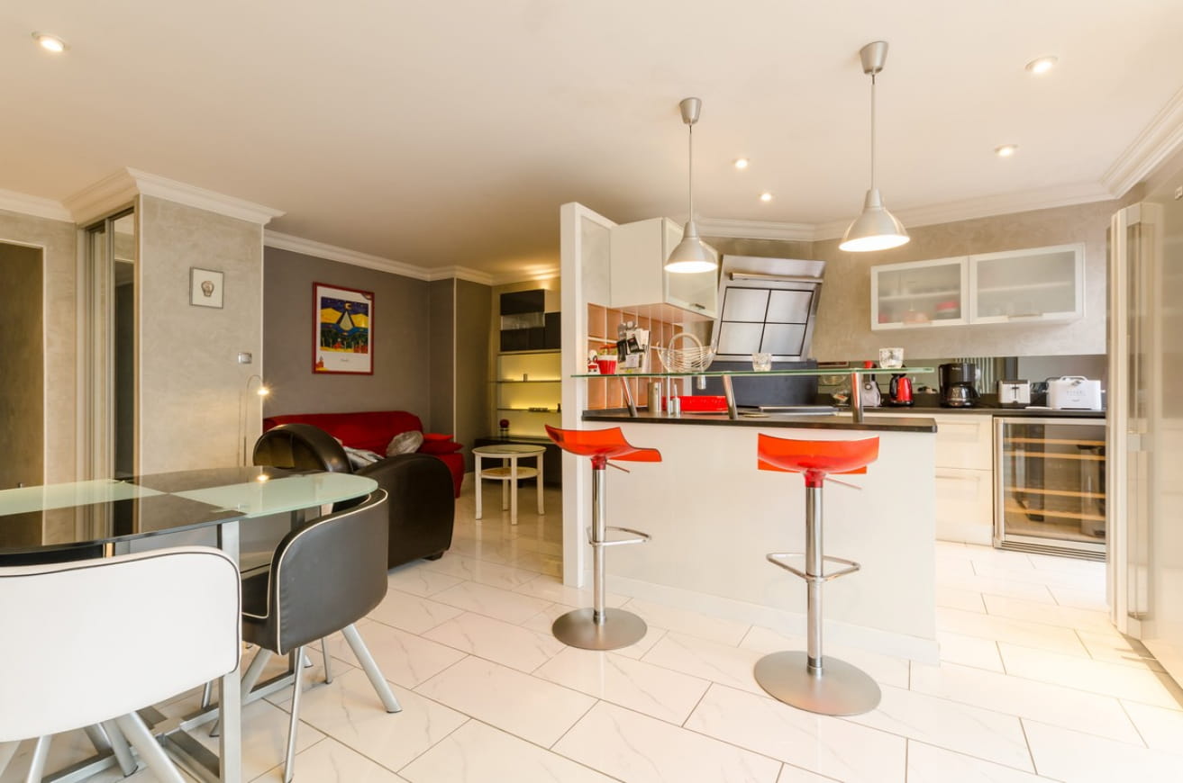 The 64 m² Le Gros Raisin apartment is on the 3rd floor of a secure building with janitor and elevator. The modern style of the apartment is striking from the moment you enter. The owners offer a warm welcome and hand over the apartment keys in a friendly atmosphere.