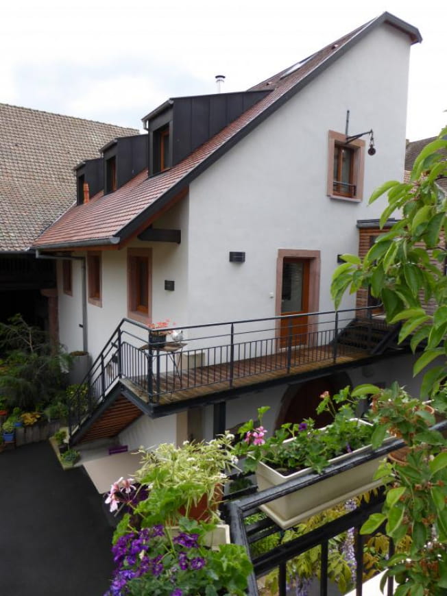 The Cour de L’Ours gîte has been converted from a former vineyard into an outbuilding adjoining the owners’ house. Quietly situated at the top of the village on the Alsace Wine Route, the gîte is ideally placed for visiting Kaysersberg, Riquewihr, Eguisheim and Colmar, among the jewels of the vineyards. Backing onto the Vosges mountains, it offers easy access to hiking trails between forest and vineyards.