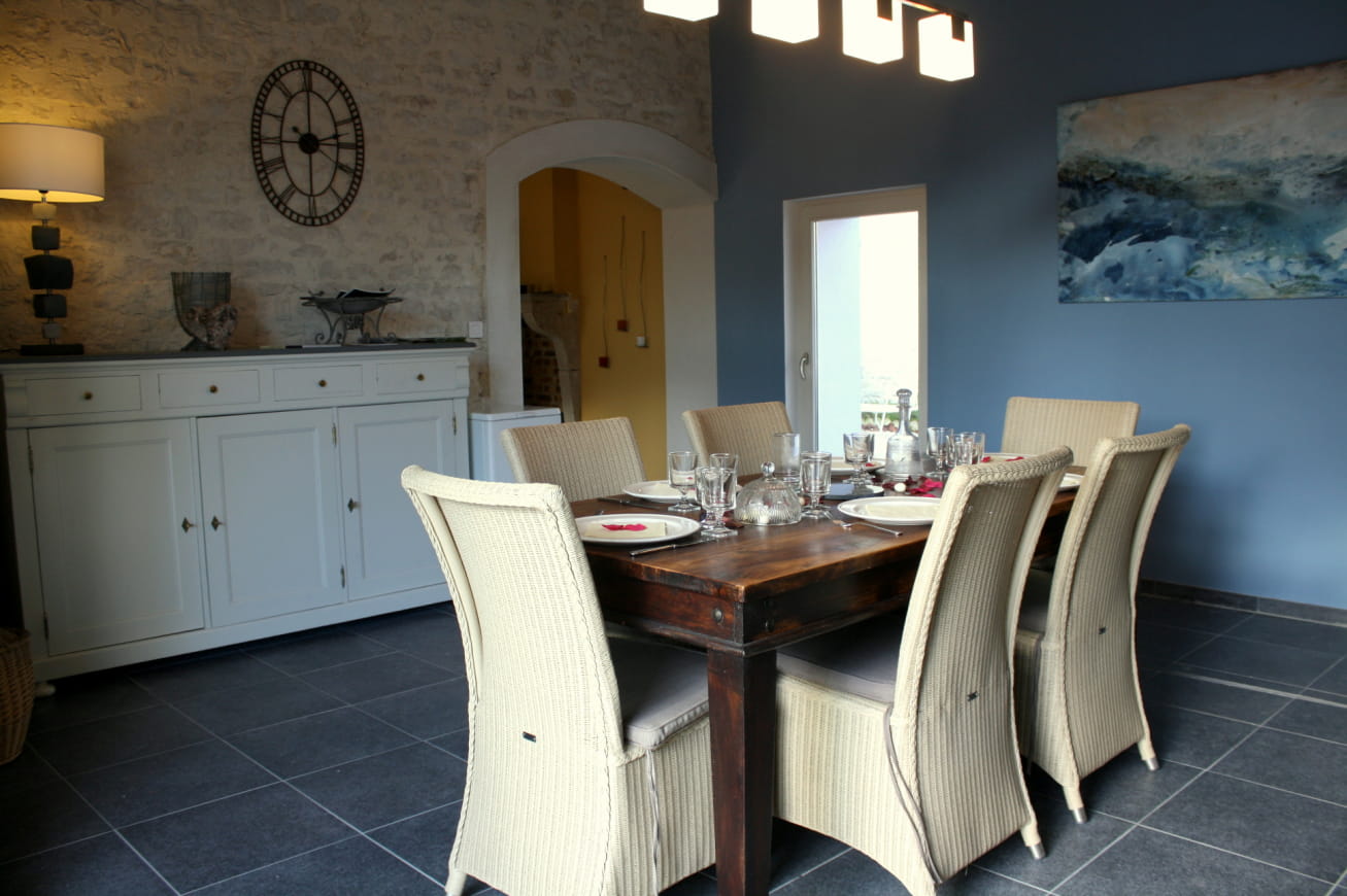 La Petite Maison d’été is a stone building with traditional country charm. Its distinctive light-colored facades are attractively decorated with climbing plants. Enter through the green gate to discover a 230 m2 plot with space for 2 cars, an enclosed garden with small terrace, table, deckchairs and barbecue area. Inside, everything is cosy. You’ll notice a beautiful harmony between modern and classic wooden furniture, beautifully arranged. Every room is brightly lit, leaving plenty of room for conviviality and relaxation.