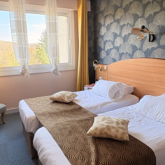 The hotel offers 26 spacious rooms, as well as a restaurant, O’Carré d’Art, recognized as a Maître Restaurateur. A variety of leisure facilities are also available on site, including a ping-pong table, bowling green, heated swimming pool from May to August, bicycle rental service, not to mention the nearby municipal tennis court. All accompanied by a professional and attentive team, ready to make your stay as pleasant as possible.
