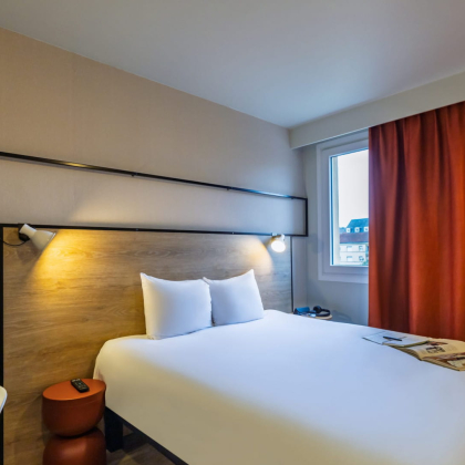 Completely renovated, the « Plaza » rooms combine contemporary design and practicality. You’ll sleep in Sweet Bed by Ibis bedding, renowned for its comfort, and enjoy individually-adjustable air-conditioning to suit your mood. Each room has free Wi-Fi, a flat-screen TV and a fully-equipped bathroom with hairdryer. Available with a double bed or twin beds, they can accommodate up to two people, and a baby cot is available on request. Some rooms are also accessible to people with reduced mobility.