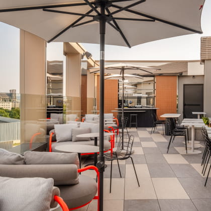 Enjoy 24-hour access to the fitness room to keep you active throughout your stay. The Le Pop restaurant and bar, located on the first floor, welcomes you at all hours to enjoy inventive cuisine or sip a cocktail in a friendly atmosphere. Finally, head to the Rooftop, on the 8th floor, for a breathtaking view over the rooftops of Reims and the iconic cathedral.