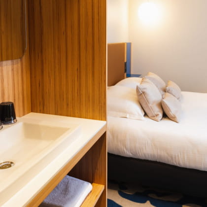 Our 64 rooms will seduce you with their minimalist lines and bright, contemporary furnishings.