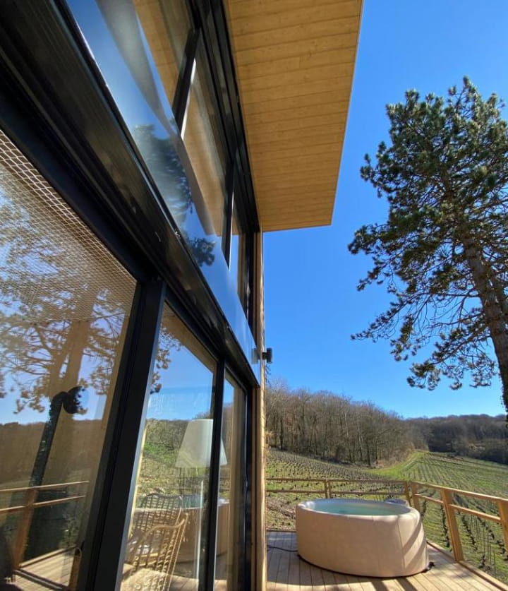 Chalet Cormoyeux also boasts areas dedicated to relaxation. Sit back in the hammock and simply admire the scenery! Or join us on the terrace, and let yourself be seduced by the silent Jacuzzi! Between vineyards and valleys as far as the eye can see, a magnificent panorama awaits you.