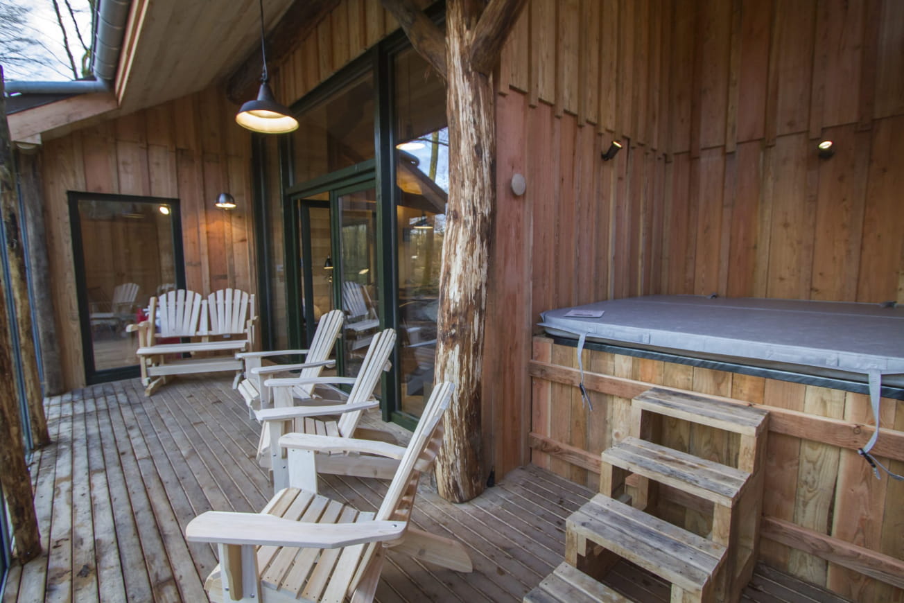 Jack London Lodge pays homage to the famous film “The Call of the Wild”. This luxury accommodation (96 m²) sleeps 6. Its terrace features a Jacuzzi and opens onto wolf country. So you can relax and watch the wolves in peace.