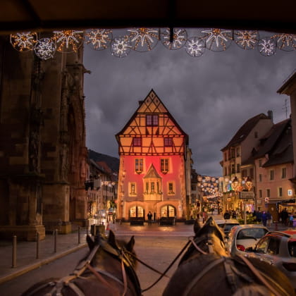 Come and enjoy a magical experience in Thann with a horse-drawn carriage ride to the rhythm of hooves. Take a seat and let yourself be enchanted by the magical atmosphere of this ride. Under the glitter of the Christmas lights, the town’s monuments are bathed in a unique light, revealing their history and authentic charm.