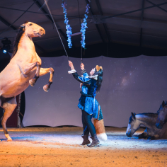 In a world where the virtual takes precedence over the real, Namhar, the glass puppet offers a suspended, intense and deeply human moment. This sensitive and powerful equestrian show explores the question of identity in the age of social networks, through the journey of a character trapped in an ideal image, built to please.