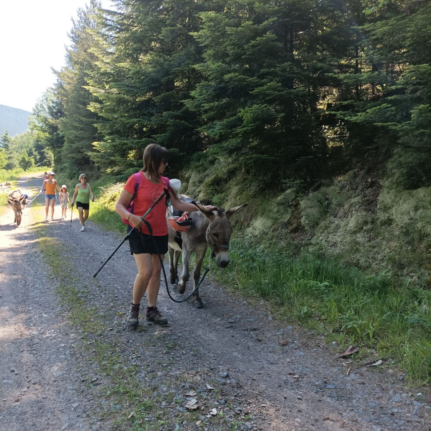 La forêt ân'imée is an association located in the Donon massif that offers various outdoor activities for the whole family, in the company of our animals, in a natural environment. In particular, we offer independent walks accompanied by a donkey.