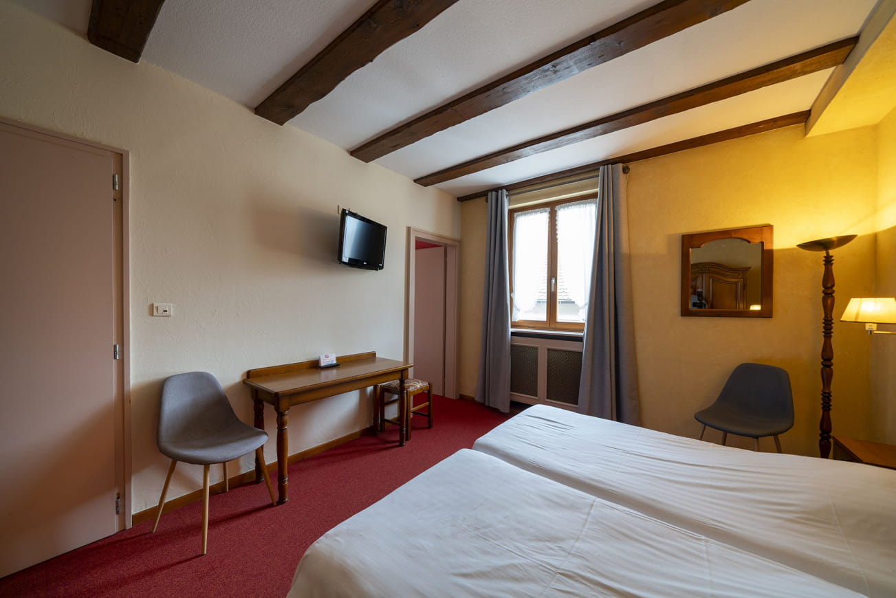 The hotel's rooms, regularly renovated for the utmost comfort of our guests, have private bathrooms. Wifi is available throughout the hotel. In the restaurant, our Chef serves generous regional cuisine, including some of our Alsatian specialities, while tasting Alsatian wines, including the famous Pinot Noir Rouge de Saint-Hippolyte.