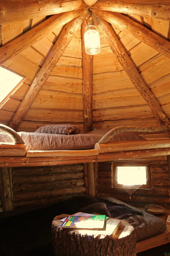 You'll find yourself in an elevated refuge with the comfort and safety of a well-maintained hut. La Cabane du Barde sleeps 4. Sleep in this cozy cocoon and let yourself be transported into another universe. Apart from the small windows that let in natural light, you'll need a flashlight for illumination. That's the charm of this unusual accommodation!