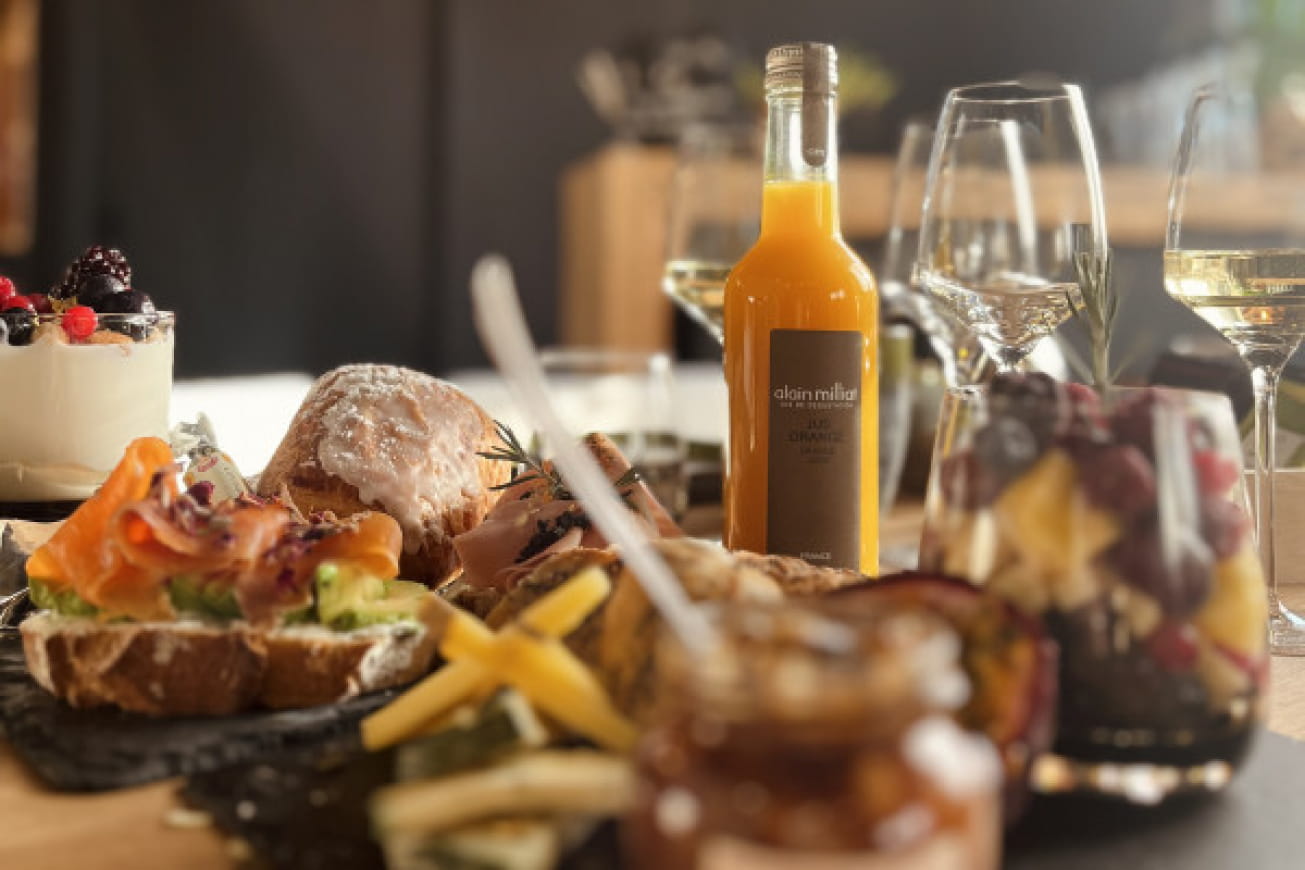 Continue the adventure in the tea room, where an assortment of sweet and savoury treats, accompanied by a glass of crémant, awaits you. On the menu for this Alsatian brunch: viennoiseries, Alsatian bread and jam, local cheeses, charcuterie, fresh fruit salad, savoury tartines and a full bowl, with your choice of hot beverage and Alain Millat fruit juice. To enhance the experience and answer any questions you may have, a guide will be on hand throughout the visit.