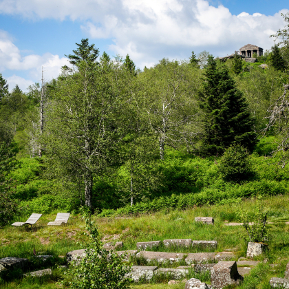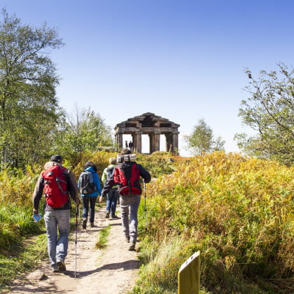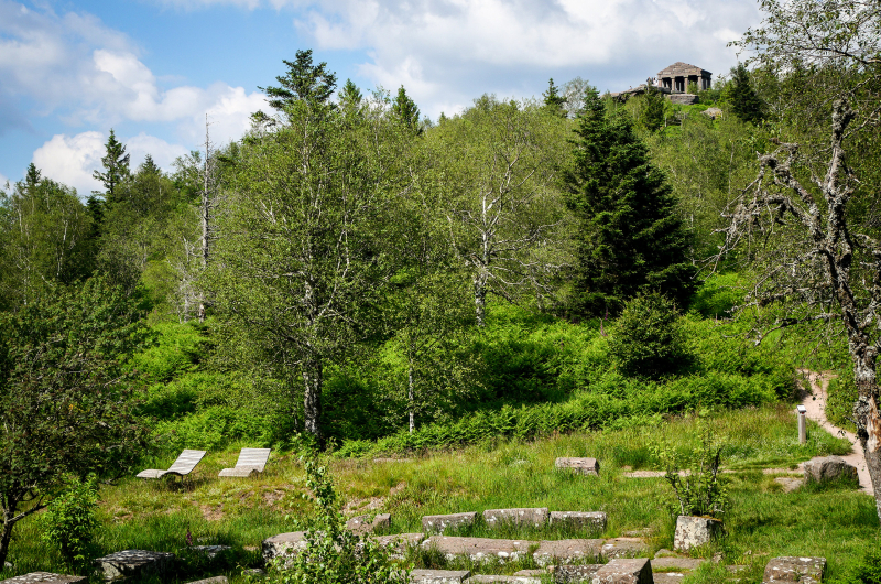 Vous entamez ensuite une descente dans la forêt pour grimper de nouveau et atteindre le mythique sommet du Donon à 1009 m. Le site est connu depuis la préhistoire, période à laquelle on lui attribue un caractère sacré qui ne le quittera plus. Vous pourrez d’ailleurs observer quelques vestiges archéologiques datant du néolithique et de l’époque gallo-romaine. Mais ne vous y trompez pas, le temple antique qui coiffe le sommet date en fait de Napoléon III !