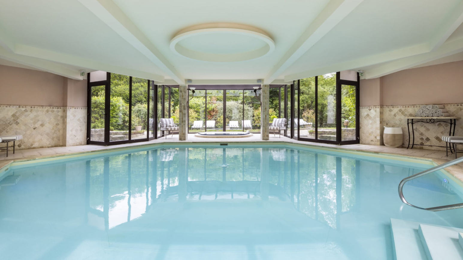Potete anche utilizzare la piscina riscaldata per rilassarvi nell'acqua calda. Completate la vostra pausa di relax con rinfreschi e delizie serviti al bar o sulla terrazza.