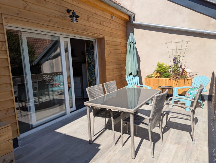 Una piacevole terrazza con barbecue, ombrellone, sedie a sdraio e accesso diretto al giardino permette di trascorrere momenti di relax in campagna. L’alloggio dispone anche di WiFi ad alta velocità, parcheggio con punto di ricarica per veicoli elettrici e attrezzature per bambini (culla, seggiolone, vasca da bagno, riduttore per sedile del water).