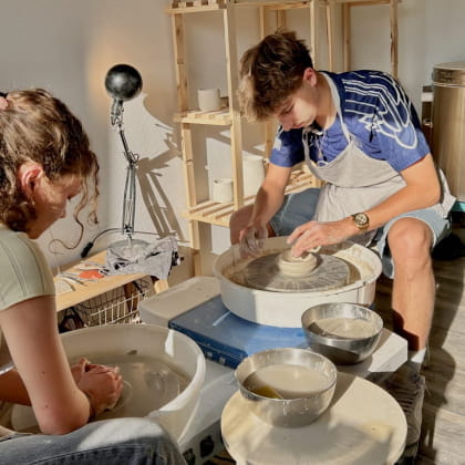 Da soli o in coppia, potrete seguire una lezione individuale per imparare le basi della lavorazione al tornio e creare il vostro pezzo di ceramica. Charlotte vi guiderà passo dopo passo per imparare a padroneggiare questa tecnica. E se questa introduzione vi fa venire voglia di andare oltre, potete tornare per un secondo workshop, che vi permetterà di decorare la vostra creazione e personalizzarla a vostro piacimento!