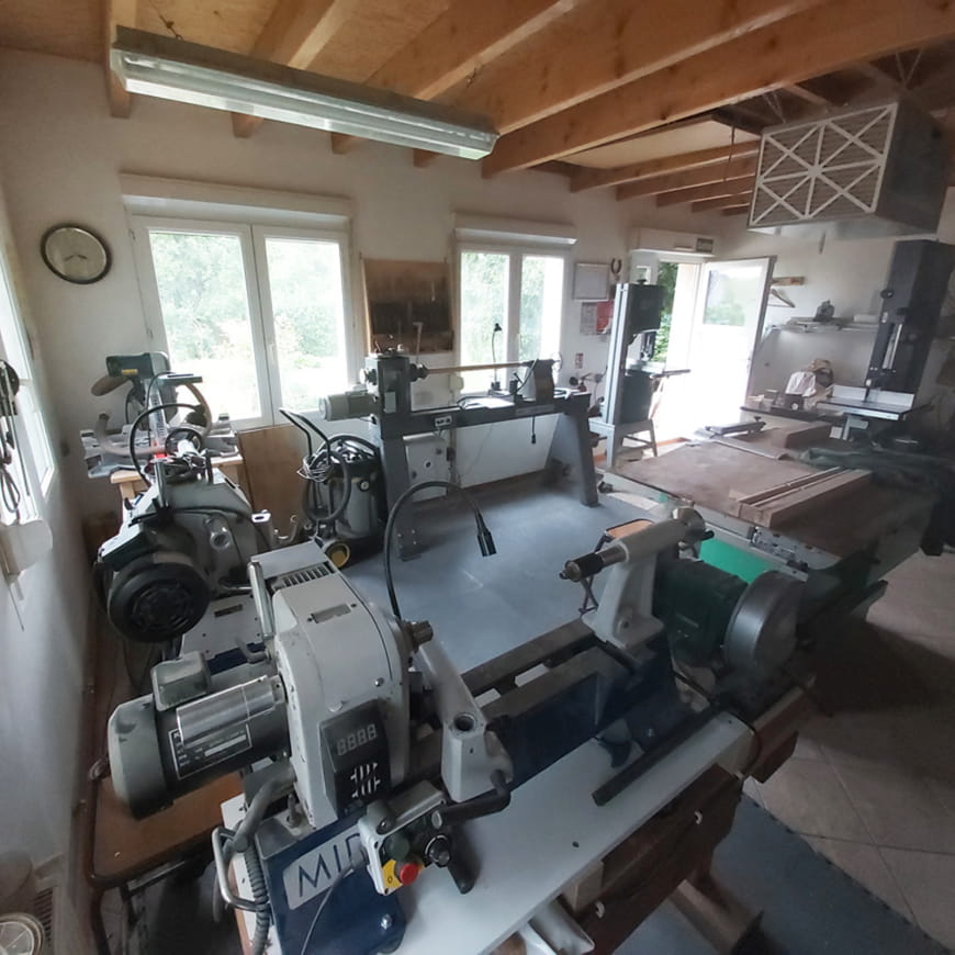 - Fornitura di tutte le attrezzature necessarie (utensili, tornio, strumenti didattici, libri sulla tornitura del legno)