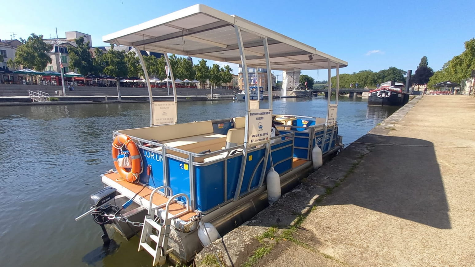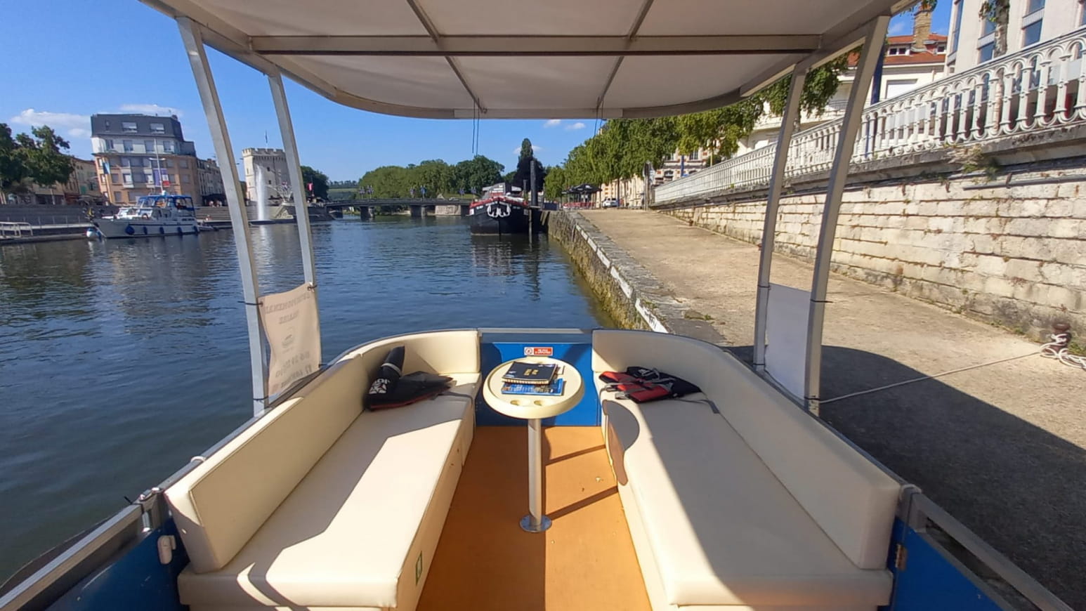 - oppure un pacchetto aperitivo in barca della durata di 1h10 con un piatto aperitivo e un bicchiere di limonata al gusto di mirabelle o di birra analcolica (in collaborazione con La Dolce Vita, un negozio di alimentari di Verdun).