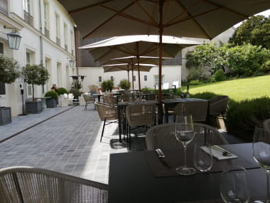 Nella bella stagione, un'ampia terrazza delimitata da un giardino alberato vi permetterà di gustare piatti delicati alla luce dell'estate.