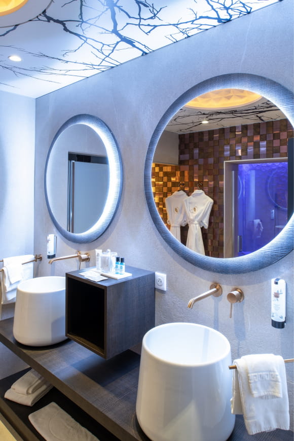Durante il vostro soggiorno, anche l’accesso alla spa e alle piscine vi inviterà a rilassarvi. Tra le 4 piscine scintillanti, le 5 saune, l’hammam-tepidarium, il bagno nordico, le docce emozionali, le spiagge scintillanti e i nidi di riposo sospesi, sarete cullati in uno stato di relax. Anche la terrazza è il luogo ideale per un profondo relax, con una vista mozzafiato sulla campagna alsaziana.